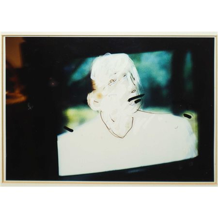 Lotto 14 Mario Schifano (Homs Libia 20/09/1934-Roma 26/01/1998) - Senza titolo, 1990 - '97 H cm 12,5x18 - in cornice H cm 28x34 Tecnica mista su foto Firma al retro. Autentica della Fondazione Mario Schifano su fotografia, numero archivio F90-97/0436. Opera pubblicata nello Studio metodologico delle opere di Mario Schifano