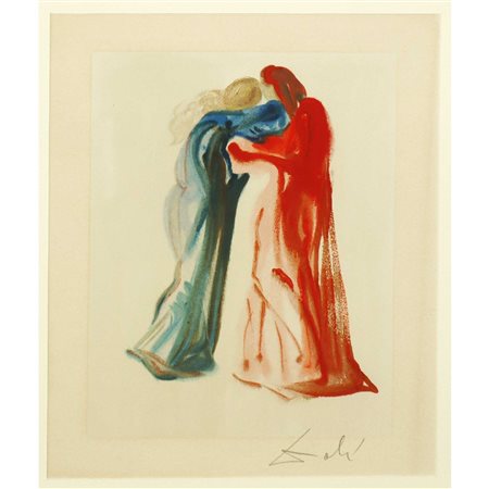 Lotto 17 Salvador Dalì (Spanish 1904-1989) - Dante e Beatrice H cm 30x24 - in cornice H cm 78x58 litografia