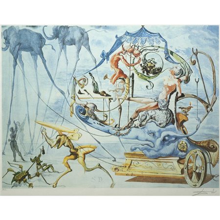 Lotto 18 Salvador Dalì (Spanish 1904-1989) - Il Carro di Bacco H cm 58x78 - in cornice H cm 78x98 litografia H.C. (Hors Commerce) al fronte in basso a sinistra, firma al fronte in basso a destra.