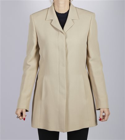 Lotto 12 MAX MARA Blazer beige. . . Blazer beige con bottoni. Lunghezza 84, spalle 39, vita 43. La modella nella fotograia solitamente indossa una taglia 38 Italiana.