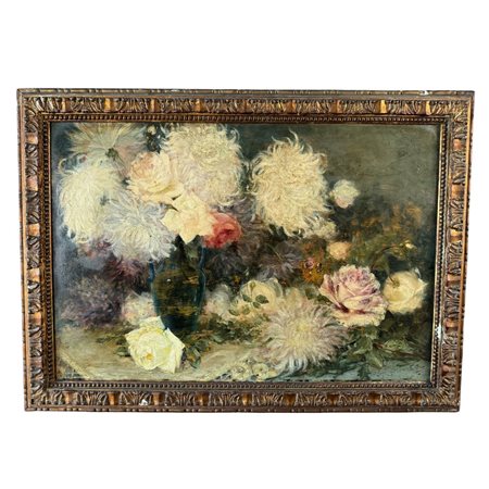 Lotto 2 Dipinto olio su tavola, periodo XX secolo scuola Italiana, raffigurante Fiori. Dimensioni interno cornice: 67x46 cm. Dimensioni compreso cornice: 77x56 cm. Reca firma in basso a destra da Alberto Cocco. Opera in buone condizioni con lievi segni di vissuto come da foto allegate.