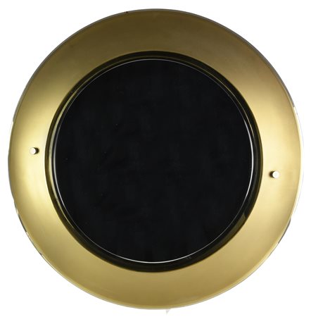 specchio diam cm 48, cornice in cristallo ambrato e satinato, cm tot 70, struttura in ottone nichelato
