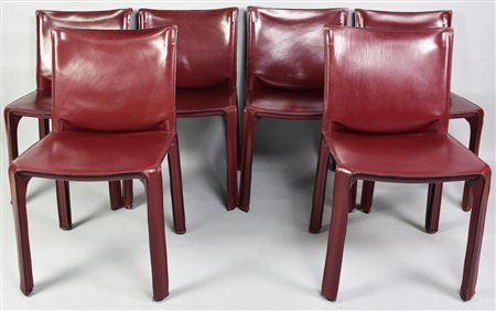 lotto di sei sedie in cuoio con struttura in metallo e poliuretano