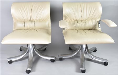 coppia di poltrone con struttura in metallo cromato e seduta in poliuretano rivestito