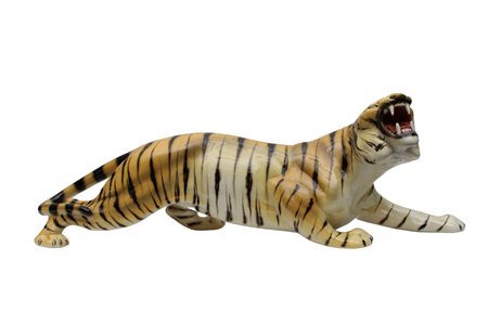 SCULTURA ICONICA in porcellana raffigurante Tigre che ruggisce,produzione italiana design di Ronzan, marchiata sotto la zampa anni 60 h cm 26 x 81 x 24