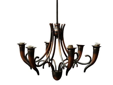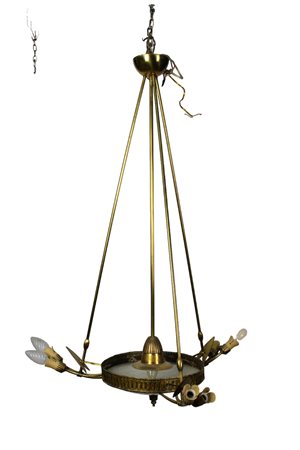LAMPADARIO A 5 LUCI in ottone a forma di cornucopie produzione italiana anni 50  h cm 79 x 65