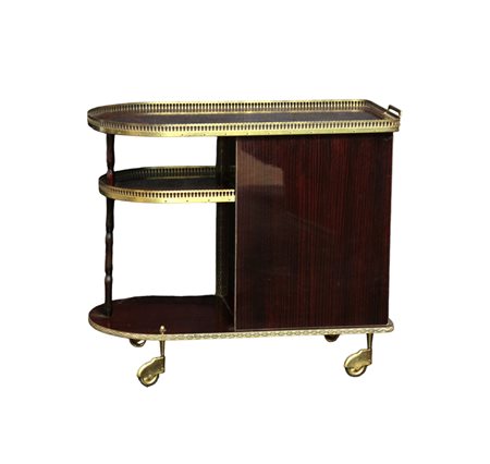 CARRELLO BAR ANNI 60 in legno con inserti lavorati in ottone produzione italiana  h cm 72 x 86 x 43