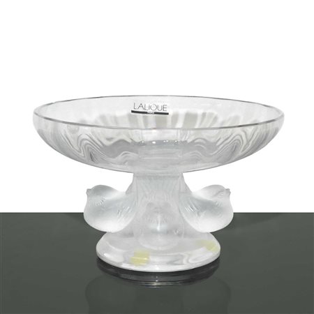 Lotto 7 Lalique France (1888) - Coppa in cristallo satinato Elisabeth Birds Lalique cm 14 diametro 12 base 8,5X8,5