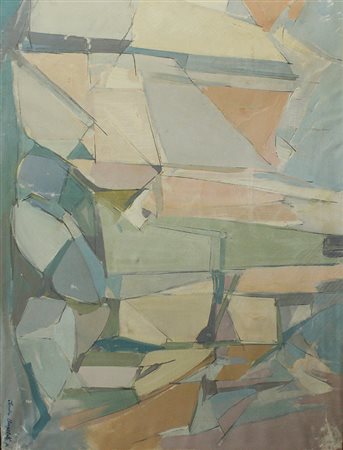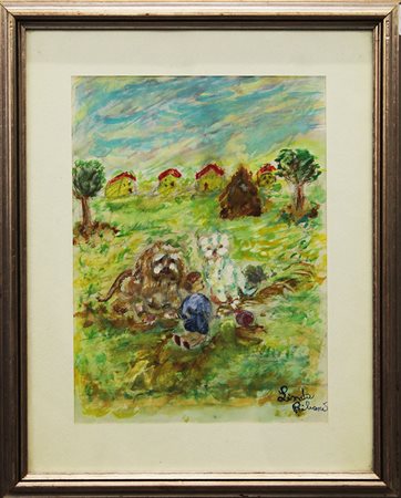 Lotto 12 LINDA RIBANI, "Paesaggio", anni '70, tecnica mista su cartoncino, dim 31x23 cm. Al fronte: firma in basso a destra. Opera con cornice.