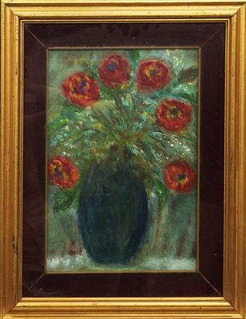 Lotto 4 LIA RIBANI, "Vaso di fiori", anni '70, tecnica mista su faesite, dim 38x26. Al verso: firma in basso a destra. Opera con cornice.