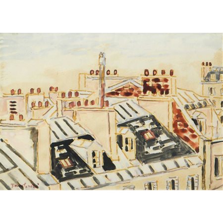 Lotto 14 Orfeo Tamburi (Jesi 28 maggio 1910-Parigi 15 giugno 1994) - Tetti parigini 16,5x21,5 incornice 36x51,5 Gouache su carta Firmato in basso a sinistra