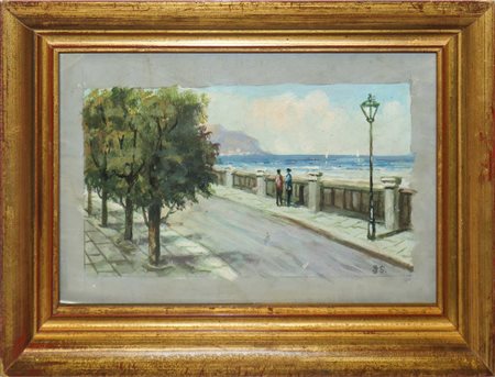 Lotto 16 Veduta della costa di Palermo con Monte Pellegrinino, Early 20° secolo H cm 11x19.7 - in cornice H cm 20x29 Acquerello su caroncino