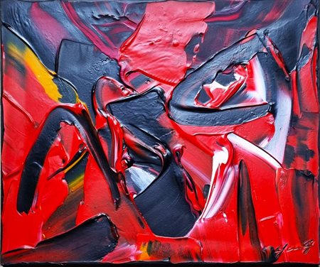 Lotto 33 GERMANA' MIMMO Catania 1944 - Busto Arsizio 1992 "Senza titolo" Olio su carta pesante cm 56x75,5 del 1989. Firmato e datato sul fronte, in basso a destra. Autentica e archiviazione su foto della Galleria "L'Acquario" di Caltanissetta, a cura di Di Maida, con timbro a secco e controfirmata dal fratello dell'Artista, Alfio Germanà. Opera pubblicata su catalogo a cura della Saletta d'Arte Viviani di Pisa, a pag. 18. Catalogo a corredo.