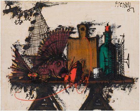 Lotto 31 PICCINNI GENNARO Bari 1933 - 2022 "Senza titolo" Tecnica mista su tavola cm 50x60. Firmata sul fronte in basso a destra.