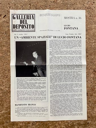 Pieghevole illustrato edito in occasione dell'esposizione personale di Lucio Fontana tenutasi presso Galleria del Deposito - Gruppo Cooperativo di Boccadasse, Genova, Ottobre 1967 (fronte - retro con testi tratti dal Manifesto Bianco di Lucio Fontana)