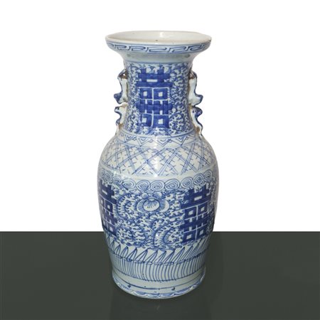Lotto 2 Grande vaso cinese dinastia Qing 1821/1850 blu e bianco, 1821/1850 cm 45X24 Finte anse sul collo del vaso. Ceralacca sull'orlo.Finte anse sul collo del vaso. Ceralacca sull'orlo.