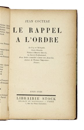Lotto 17 Cocteau Jean, Dedica autografa su libro Le rappel a l'ordre. Paris, Stock 1918-1926.