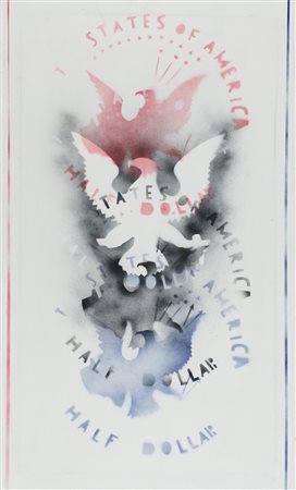 Sul verso: firma e stencil "Half Dollar".