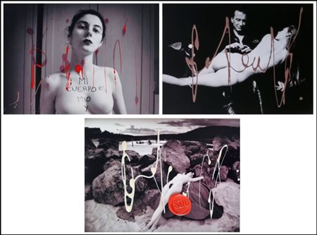 Lotto 395 DE FEUDIS SEBASTIANO Foggia 1960 "Senza titolo" Lotto di n. 3 foto con applicazioni di ceralacca e cera fusa, cm 17,5x12. Firmate al retro.