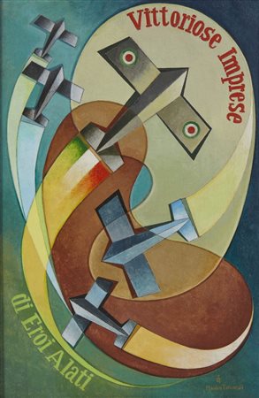 Lotto 5 TANCREDI MANLIO VITTORIOSE IMPRESE DI EROI ALATI. olio su tela. Cm 30,50 x 45,50. firma e titolo. Cornice presente