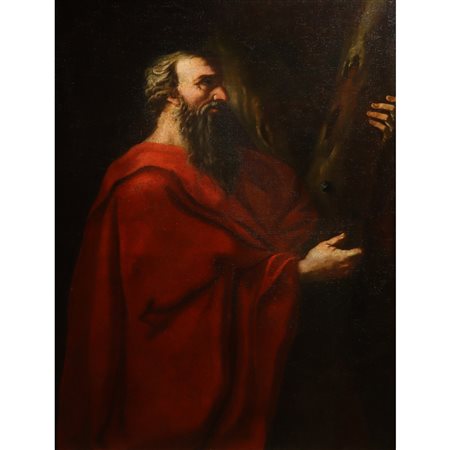Lotto 2 Sant'Andrea che porta la croce, 17° secolo Cm 115x87 in cornice cm 147x108 Olio su tela Cornice non coeva. Opera rintelata.