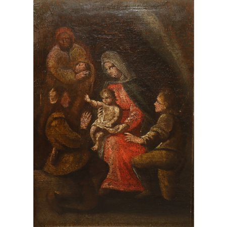 Lotto 12 Pieter Coecke van Aelst (attribuito_a) (fiamminga 1502-1550) - Madonna con libro e Gesù bambino. Cm 40x30 Dipinto ad olio su tavola "Eccellente pittore rinascimentale fiammingo ha vissuto in Italia dove ha avuto modo di apprezzare l'arte dei pittori italiani suoi contemporanei. Fu un grande estimatore di Raffaello, a cui spesso si inspira, come ad esempio in questo dipinto, seppur sostanzialmente rimane ateo entro canoni e sviluppi stilistici suoi propri. Ha dato un contributo importante alla grande arte rinascimentale nelle fiandre. Disegnatore, pittore ed editore di trattati di architettura fu conteso dai più famosi personaggi del suo tempo: Carlo V, Francesco I Re di Francia, Enrico VIII d'Inghilterra, Cosimo I dei Medici. In tale opera è evidente l'influenza dei modi rinascimentali italiani. Egli avvia nei Paesi Bassi il passaggio e la transizione dalla concezione tardo gotica a quella rinascimentale. Gli scritti e i trattati di Sebastiano Serlio gli furono di esempio. Questo dipinto, semplice, probabilmente per una committenza privata, si ispira in qualche modo alla Madonna del Connestabile da Raffaello. Infatti, la rappresentazione della Madonna e del bambino è resa in maniera reale e fluida, donando naturalità alla scena. Egli abolisce lo sfondo paesaggistico e incentra la figurazione sui due personaggi dando cosi più forza al significato spirituale. Traspare ed è palpabile un’armonia mesta e malinconica, allo stesso tempo una serenità trasmessa dai personaggi, soprattutto nello sguardo di Maria, che legge la profezia sulla morte di Gesù, con dolce rassegnazione mentre il bambino la ingiunge a leggere indicando con il dito. Le forme sono ben calibrate e la gestualità del bimbo indicante e della Madonna che lo stringe alla vita in maniera protettiva, rendono la scena felice e ridondante di armonia. Una luce che sembra provenire da una finestra incentra i personaggi e illumina gli abiti dipinti in maniera morbida e fluida. Fu di esempio per tutti quei pittori olandesi- manieristi della seconda metà del 500. 40x30, olio su tavola. Provenienza: illustra famiglia catanese." ASORstudio