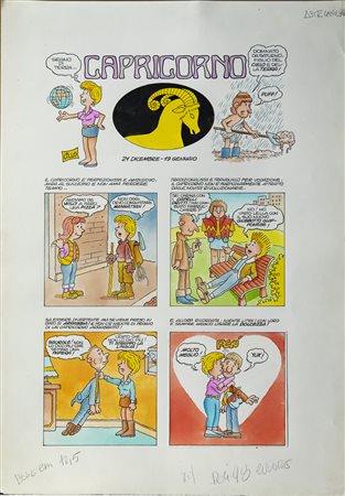 Lotto 2 LILLO La serie dei segni zodiacali. 1999. Chine colorate su Cartoncino Schoeller. Cm 36,00 x 25,00. Tavola sul segno zodiacale del Capricorno con velina trasparente di protezione.