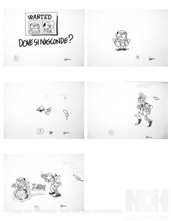 Lotto 11 SENESI VAURO (n. 1955) "DOVE SI NASCONDE?"(ANIMAZIONE INTEGRALE PER IL PROGRAMMA DI MICHELE SANTORO "SERVIZIO PUBBLICO"). 2013. pennarello su carta. Cm 30,00 x 20,00. https://michelesantoro.it/2013/05/wanted-la-vignetta-vauro/