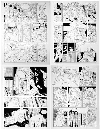 Lotto 22 Morales Paolo "Storia erotica". China su cartoncino. Cm 42,00 x 30,00. Uno dei più eclettici e talentuosi autori dell'arte disegnata di area romana. Da Lanciostory e Skorpio, Intrepido e l'Etarnauta fino a Martin Mystere cui si dedica fino alla sua prematura scomparsa. Già fondatore della celebre Scuola romana dei Fumetti dove ha insegnato lo storyboard cinematografico. Sceneggiatore e storyeditor per la Rai, nel 1984 comincia una lunga avventura nell'ambito dello storyboard per il cinema che lo porta a lavorare per Francis Ford Coppola (Il Padrino), Martin Scorsese (Gangs of New York), Clive Donner, Paul Schrader, Giacomo Campiotti, Duccio Tessari, Antonio Margheriti, Lucio Gaudino, Sergio Sollima, Giuliano Montaldo
