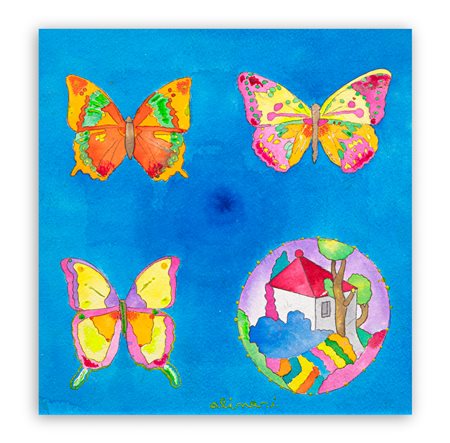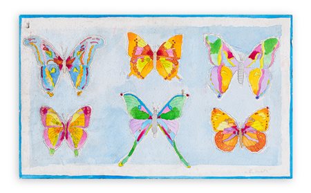 Il certificato di archiviazione applicato al retro specifica che l'opera è una delle prime sulle farfalle 'fascino di colori esili che oscillano nel vuoto' -