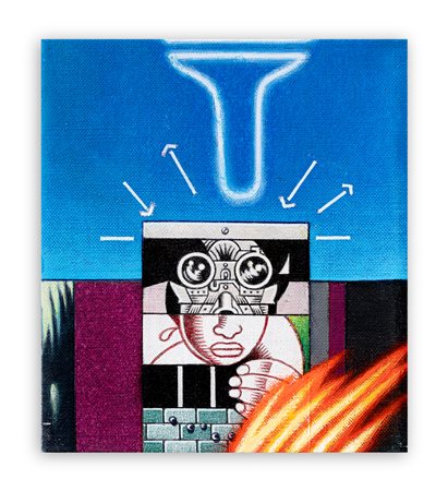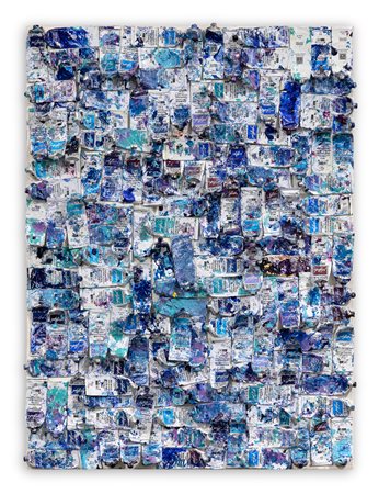 Smalto, acrilico, spray e collage (ceramica) su tela