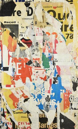 decollage su tela, manifesti e colla, cm 61x39