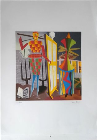 Lotto 3 MAN RAY (1890-1976) Litografia a Colori CM 65X50 Titolo -Figure Futuristiche- Firma a Matita al Fronte in Basso a Destra e Tiratura a Sinistra, Carta BFK Rives Man Ray Company LTD e Timbro a Secco, Certificato Accluso