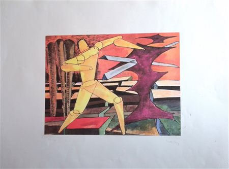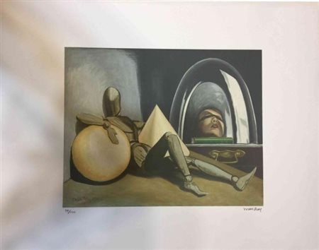 Lotto 5 MAN RAY (1890-1976) Litografia a Colori CM 65X50 Titolo -Guerriero a Riposo- Firma al Fronte a Matita in Basso a Destra e Tiratura a Sinistra, Timbro a Secco e Certificato Accluso
