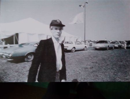 Lotto 21 CRHISTOFER MAKOS (USA 1948) Fotografia Originale CM 27,3X18 a Andy Warhol ad un Raduno di Macchine D' Epoca Anno 1982 al Retro Timbro Originale di Makos