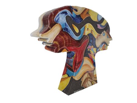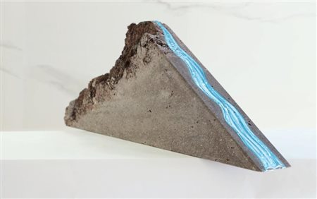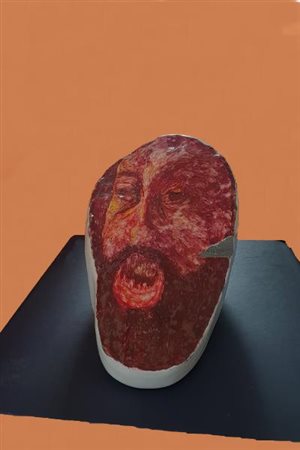 Scultura a tecnica mista. Roccia vulcanica dell'Etna e decalco di arte digitale, cottura a 950 gradi. -