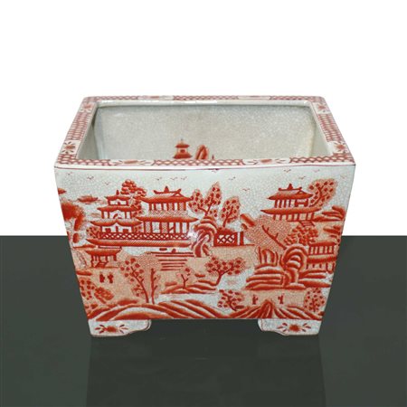 Lotto 3 Vaso per bonsai orange Cina dipinto con paesaggi all'interno e all'esterno h cm 19X22X26