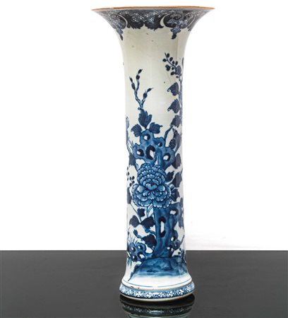 Lotto 9 Vaso blu e bianco con decori di fiori e uccelli H cm 36, diametro bocca cm 15,5