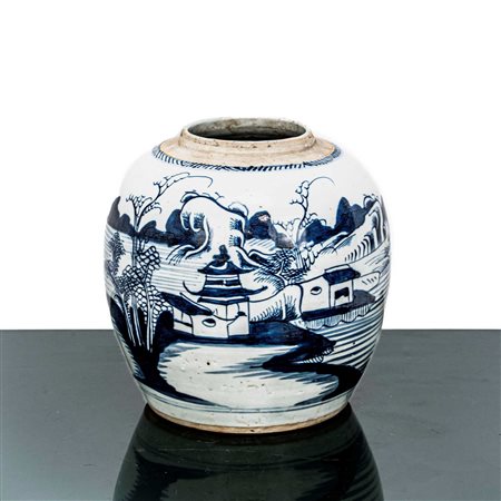 Lotto 12 Vaso da zenzero bianco e blu dipinto con un antico paesaggio, 18° secolo Qing , dinastia Qianlong h cm 22X23