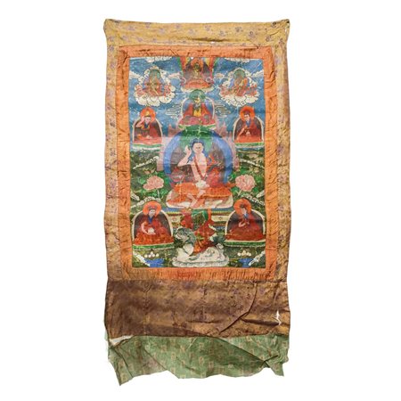 Lotto 17 Thangka su stoffa con al centro Buddha ed intorno altre divinità, 19° secolo h cm 107X54