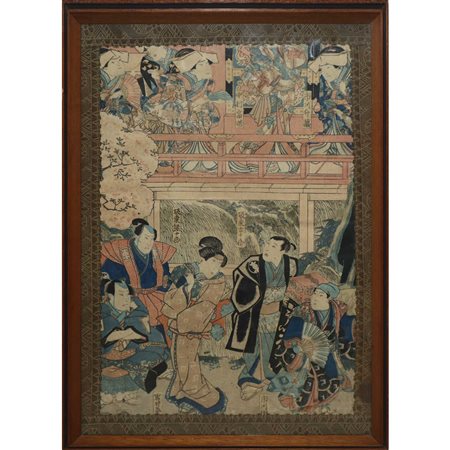 Lotto 22 Scena di vita giapponese, 19° secolo h cm 34X23 in cornice cm 36X26