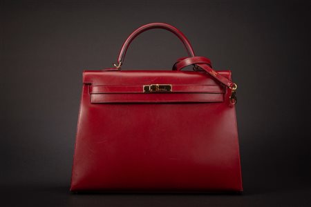 in pelle box color rouge H, dettagli in metallo dorato, con tracolla, mancante di clochette, chiavi e lucchetto, cm 35, con sacchettoin pelle box color rouge H, dettagli in metallo dorato, con tracolla, mancante di clochette, chiavi e lucchetto, cm 35, con sacchetto -