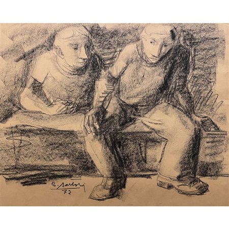 Lotto 12 Carlo Sartori (1972), carboncino con soggetto due figure, cm 38x47. In cornice. Firmato in basso a sx.