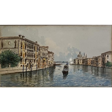 Lotto 21 Bartolomeo Bezzi (1893), Canal Grande a Venezia, acquerello su compensato, cm 21x38. Con cornice cm 41x58. Opera esposta presso il centro direzionale della Cassa Rurale Val di Non (Cles) nella mostra "Luce del paesaggio di Bartolomeo Bezzi" nel dicembre del 2008 (con curatela Camillo Fedrizzi e Nicoletta Tamanini). Firmato in basso a dx. Prezzo di riserva.