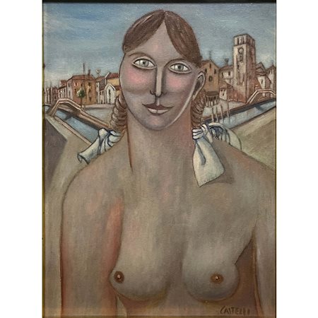 Lotto 23 Gino Castelli (1991), Nudino a San Nicolò dei Mendicoli (VE), olio su tela, cm 40x30. In cornice. Firmato in basso a dx.