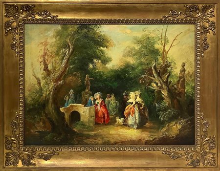 Lotto 16 Scena conviviale nello stile settecentesco, 19° secolo 50x70 cm Olio su tela Firmato Dorè