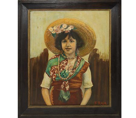 Lotto 18 Giovinetta, Taormina, 1945 35x27,5, in cornice h cm 42x35 Olio su cartone Firmato in basso a destra F.Raja