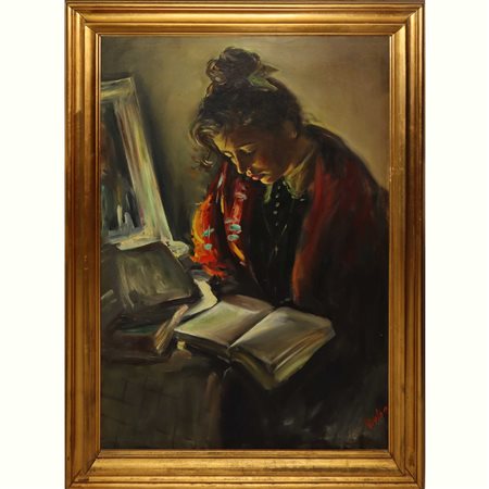 Lotto 23 Donna con libro in cornice h cm 113X79 h cm 98,5X65 Firmato in basso a destra Firmato in basso a destra