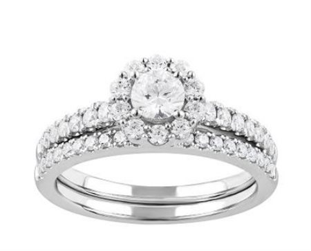 Lotto 18 Questo splendido anello è realizzato in oro bianco 14 carati, con un peso totale di 4.90 grammi. È impreziosito da 46 diamanti di alta qualità, con un peso complessivo di 1.00 carati. I diamanti, di qualità coiore G + purezza VS, offrono una brillantezza eccezionale e una purezza superiore. 31 - Bridal Set