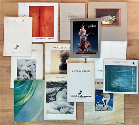 Lotto unico di numerosi cataloghi illustrati relativi ai seguenti artisti: Roberto Roberti (4), Mariangela De Maria (3), Luigi Timoncini, Ugo Riva (2), Graziella Marchi (2), Alberto Abate-Duccio Berti-Antonio Brancato-Roberto Roberti (esposizione collettiva) -